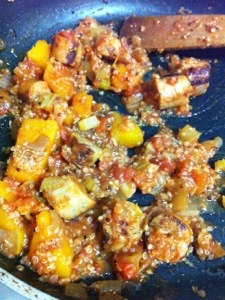 Easy dinners: Sausage, Tomato & Pumpkin with Quinoa