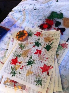 Today’s Christmas craftiness began with a potato and an old book, and ended with creative and cute gift wrapping!